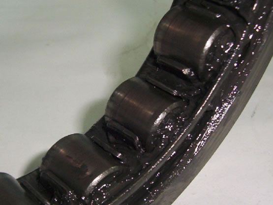 • calea de rulare pe inelul interior este mata (foto 4), la fel ca suprafata rolelor (foto 5), semn al unei uzuri datorate lipsei lubrifiantului;